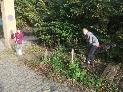 Comme tous les lundis, un petit groupe d’élèves de la maternelle à la 6e primaire a travaillé dans les espaces verts qui entourent l’école avec l’aide de Véronique, l’animatrice des petits. Une activité d’une période en multiâge pour découvrir les joies du jardinage.
