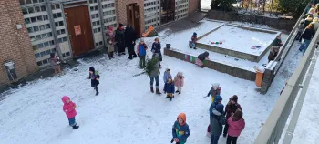 Les enfants sortent du bâtiment pour l'heure des parents (entre 15h30 et 16h). C'est le moment où les plus grands peuvent quitter seuls l'école (s'ils ont une carte de sortie) et où les parents viennent chercher leur(s) enfant(s).