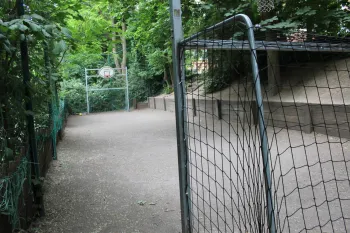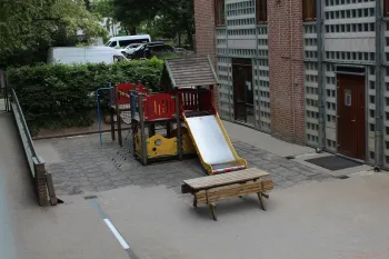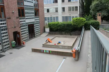 - Une cour avec bac à sable et modules de jeux