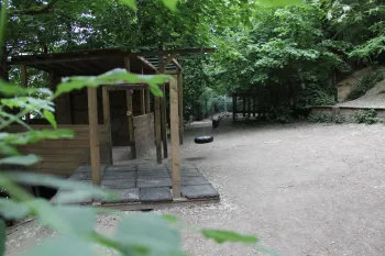 - Un terrain d'aventures avec balançoire et espace pour construire des cabanes